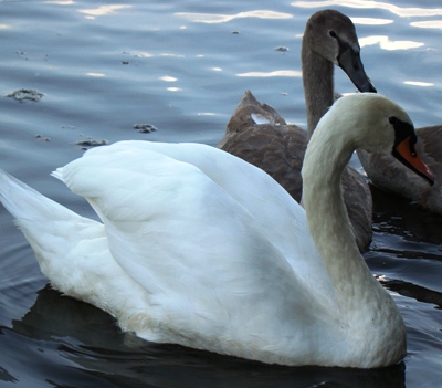 Ви коли не будь, хоч раз у житті побували рано-ранесенько, як ледве на небі показалось сонечко, десь так у годині п’ятій, над озером. Тиша навкруги, все живе тільки-но прокидається. Сонячні промені ще лише ковзають по поверхні землі і по чистому водному плесі. Над озером висять невеличкі клубки туману, а попід самим берегом із охолонувшої за ніч води виплигують рибки. А там, трохи далі, мовби під невидимими парусами, наче у казковому сні, із хмарки туману випливають лебеді. Він і вона. Лебідь і лебідка. Їхні гордо підняті голови хоч зараз готові, щоб на них наділи корони. Прекрасні птахи безшумно ковзають по гладі озера залишаючи за собою лиш ледве помітний слід, який через хвилю уже й зникає. День новий тільки-но починається…